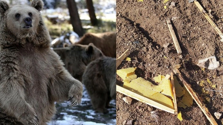 Çankırı'nın Eldivan ilçesinde kış uykusuna yatmayan ayılar, arı kovanlarına dadandı. Arıcılıkla geçimini sağlayan Hulusi Taş'ın 1 ay arayla 7 kovanını parçalayan ayılar, yaklaşık 40 bin TL zarar neden oldu.