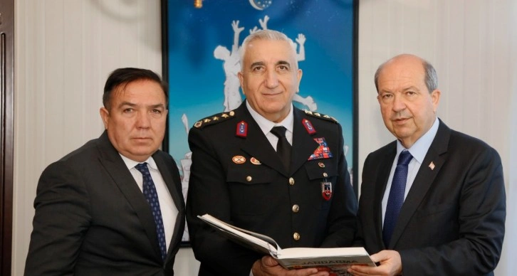Cumhurbaşkanı Ersin Tatar, Türkiye Cumhuriyeti Lefkoşa Büyükelçiliği İçişleri Müşaviri Jandarma Albay Orhan Sırma'yı kabul etti. Kabulde, Jandarma Albay Orhan Sırma, 6 Şubat depreminde jandarmanın faaliyetlerini konu alan ve Cumhurbaşkanı Ersin Tatar'ın deprem bölgelerine gerçekleştirdiği ziyaretlerle ilgili fotoğrafların da bulunduğu "Asrın Felaketinde Jandarma" isimli kitabı takdim etti.