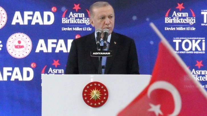 Burada konuşan Erdoğan, "Sevgili Adıyamanlılar, sizleri en kalbi duygularımla, muhabbetle selamlıyorum. Şu anda kuralar çekildi, biraz sonra da anahtarları teslim edeceğimiz konutların hak sahiplerine hayırlı olmasını diliyorum. Adıyaman, 6 Şubat depremlerinden en çok etkilenen şehirlerimizden birisidir. Adıyaman'da 39 bini konut toplam 45 bin 325 hak sahibi belirlendi. Konutlarımızın hak sahibi vatandaşlara hayırlı, uğurlu bereketli olmasını diliyorum. Halen inşası süren 32 bin konutumuzu yıl sonuna kadar peyderpey teslim edeceğiz. Bu süreçte barınma sorununu çözmek için pek çok adım attık. 91 binin üzerinde çadır gönderdik, 35 bine yakın konteyner kurarak 118 bin vatandaşımıza hizmet verdik. Toplam 1,2 milyar liraya yakın kaynak kullanarak kira yardımı yaptık. Şimdi kalıcı konutların teslimine başlayarak, şehrimizin ayağa kaldırılmasında yeni bir safhaya geçtik. Sadece konut ve iş yeri yapmakla kalmıyoruz, şehirlerimizi 'Türkiye Yüzyılı'na hazırlayıp, altyapıları da yapıyoruz" dedi.