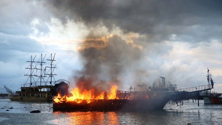 Alanya Balıkçı Barınağı'nda demirli bir tur teknesinde yangın çıktı. Alevler, barınaktaki başka bir tekneye daha sıçradı. İhbar üzerine bölgeye gelen sahil güvenlik ve itfaiye ekipleri, yangına müdahale ederek söndürdü.