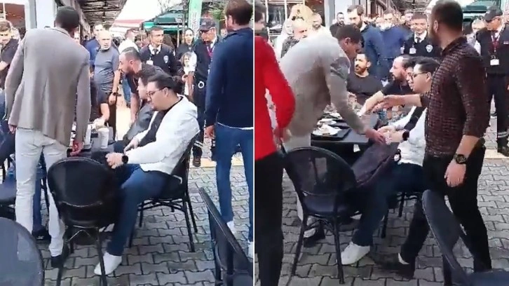 Bu sırada masada bulunan içeceğini kucağına alan bir vatandaşın kahvesi de aynı kişi tarafından elinden alınarak yere fırlatıldı.