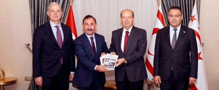 Cumhurbaşkanı Ersin Tatar, emekli Albay Atilla Güler'in kitaplarını kabul etti. Tatar, Osmanlı İmparatorluğu'nun Kıbrıs'ı İngiliz İdaresi'ne devretmesi konusundaki bilgi eksikliğine dikkat çekti.