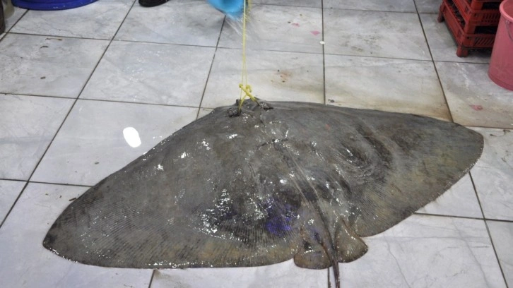 Muğla'da yakalanan 120 kilogram ağırlığındaki dev vatoz balığını görenler gözlerine inanamadı. Balığı satın alan pazarcı "Japonya’ya göndermeyi düşünüyoruz" dedi.
