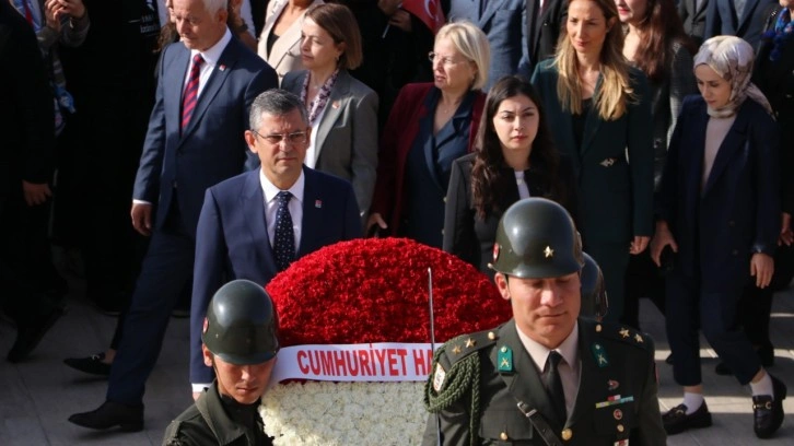 Özgür Özel’in mozoleye çelenk bırakmasının ardından saygı duruşunda bulunuldu.