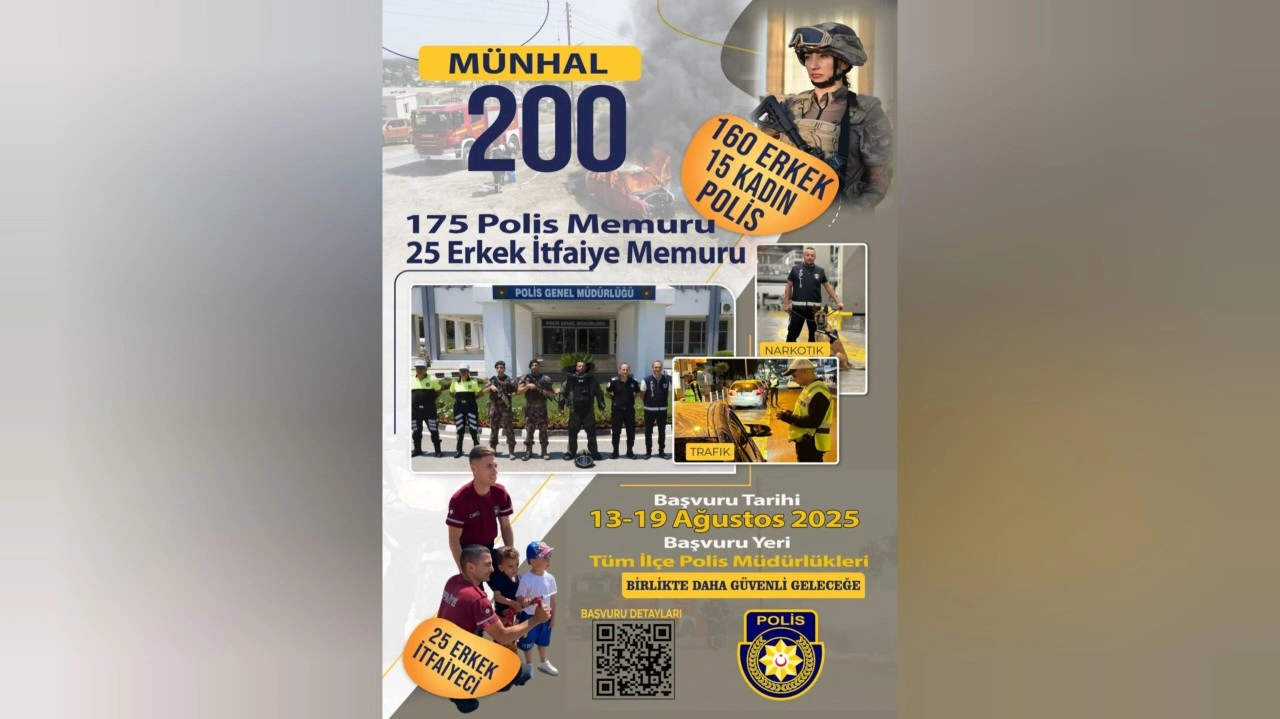 Polis Genel Müdürlüğü (PGM) 160 erkek polis memuru, 15 kadın polis memuru ve 25 erkek itfaiye memuru için münhal açtı.