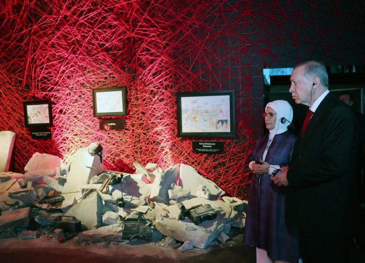Präsident Erdoğan besuchte die "Bulletproof Dreams: Gaza Children Painters Exhibition" im NEST Kongress- und Messezentrum in Belek, das im Rahmen des ADF stattfand.
