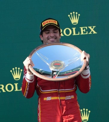 Carlos Sainz, der spanische Fahrer von Ferrari, gewinnt das dritte Rennen der Formel 1 Weltmeisterschaft, den Australien Grand Prix.