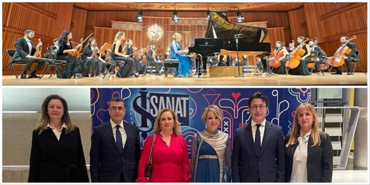 Cumhurbaşkanı Ersin Tatar’ın eşi Sibel Tatar, dünyaca ünlü sanatçı ve orkestraları buluşturan “İş Sanat” etkinliğinde, orkestra şefi Rengim Gökmen yönetiminde, KKTC Cumhurbaşkanlığı Senfoni Orkestrası ve piyanist Rüya Taner’in “solist” olarak verdiği konseri izledi.