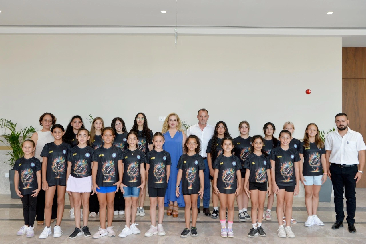 Cumhurbaşkanı Ersin Tatar’ın eşi Sibel Tatar, Cimnastik Federasyonu Asbaşkanı Basri Aydoğan, Milli Takım Antrenörü Berk Aydoğan, Mesarya Yıldızları Kültür ve Spor Derneği Başkanı Beril Aydoğan ve Mesarya Yıldızları Cimnastik Akro Gösteri Ekibi ile bir araya geldi.
