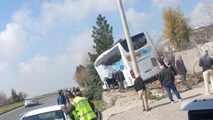 Mardin'in Nusaybin ilçesinde yolcu otobüsü, sürücüsünün kontrolünden çıkarak bir evin bahçesine girdi.
