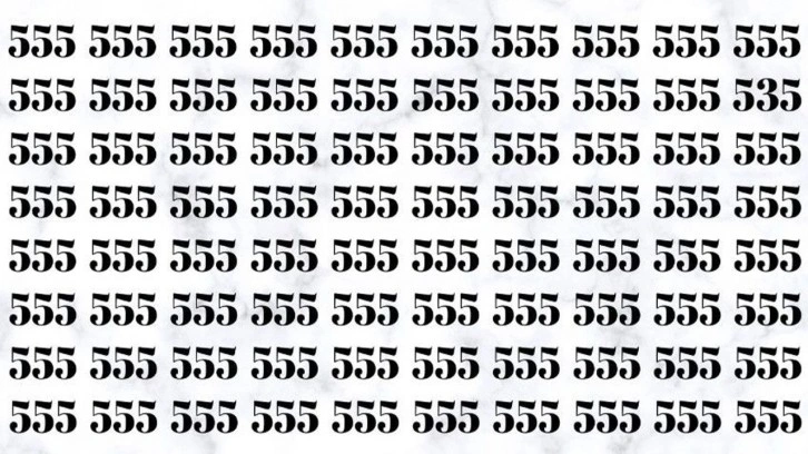 Gördüğünüz gibi resimde çok sayıda 555 var. Resimde 80 adet sayı gizli. Bu sayıların 79'u aynı olurken 1 tanesi farklı. İşte siz de farklı olan sayıyı bulmalısınız. 555 sayılarının arasında 535'i bulmanız için kendinizi 4 saniyeye ayarlayın. 4 saniye içerisinde farklı sayıyı bulursanız, başarınıza çok sevinebilirsiniz.
