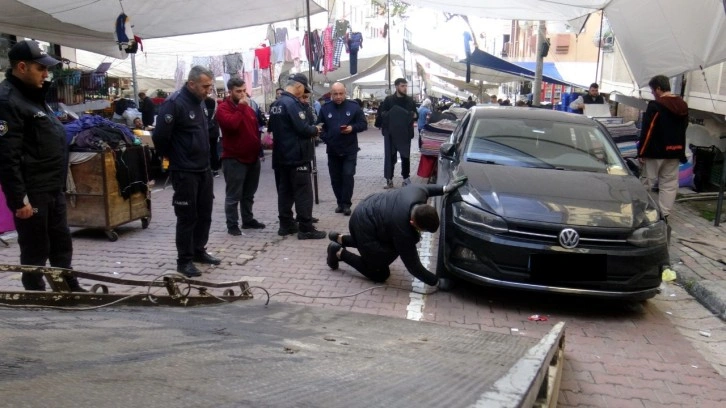 Pazarcılardan Osman Akgün, "Bu araç çalıntı olabilir. Darbeler de var. Alınması ve sahibinin bulunması için ilgilileri çağırdık" dedi.