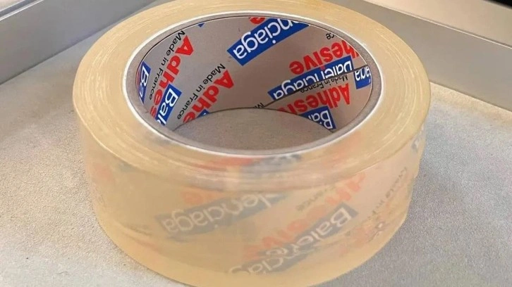 Koleksiyondaki bileklik, bilinen şeffaf bant rulosuna benzemekle kalmıyor bire bir aynısı, tek fark üzerinde Balenciaga logosu ve 'yapışkan' ibaresi bulunuyor.