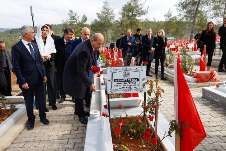 Tatar, ardından taziye çadırına giderek, hayatını kaybedenler için dua okudu. Cumhurbaşkanı Ersin Tatar’a bölge protokolünün yanında, KKTC Mersin Başkonsolosu Zalihe Mendeli eşlik etti. Ziyaretin ardından basına konuşan Tatar, bir yıl önce meydana gelen depremde hayatını kaybedenlere yeniden rahmet dileyerek, sevenlerine baş sağlığı, Türk milletine sabırlar diledi.