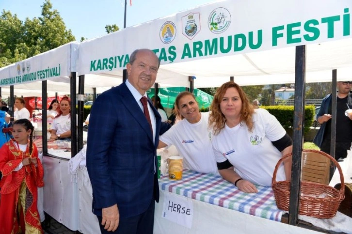 Cumhurbaşkanı Ersin Tatar, Karşıyaka'da Lapta Alsancak Çamlıbel Belediyesi, Karşıyaka Muhtarlığı ve Karşıyaka Kültür ve Sanat Derneği işbirliğiyle düzenlenen Geleneksel Karşıyaka 6. Taş Armudu (Ahlat) Festivali'ne katıldı.