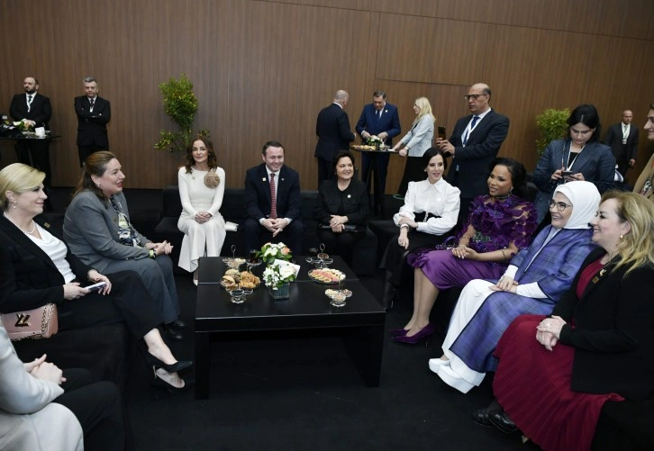 Emine Erdoğan, görüşmenin ardından “Gazze Kurşun Geçirmez Düşler Sergisi”ni de lider eşleriyle gezerek ADF oturum salonuna geldi.