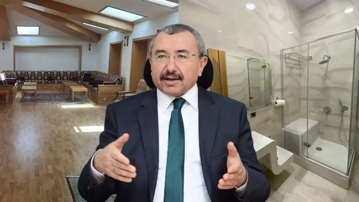 "O bina afet toplanma alanıdır. 200 yıl dayanacak bir bina. Bina, Selçuklu mimarisine göre yapıldı, bundan rahatsız oluyorlar. İki minder ve bir ahşap oturma grubundan şark köşesi mi olur? Özel banyo, jakuzi yok; duşakabin var. Fen işlerinde çalışan başkan yardımcıları şantiye geziyorlar, duş alabilmeleri için yapıldı."