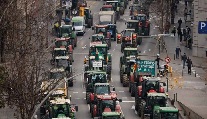 İspanya'da protestolarını son iki gündür artırarak devam ettiren çiftçiler, ülke genelinde çok sayıda yolu kapatıp trafiği felç etti.