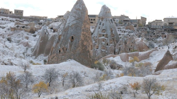 Mevsimin ilk kar yağışı özellikle yüksek kesimlerde etkili oldu. Bölgedeki peribacaları beyaza büründü.