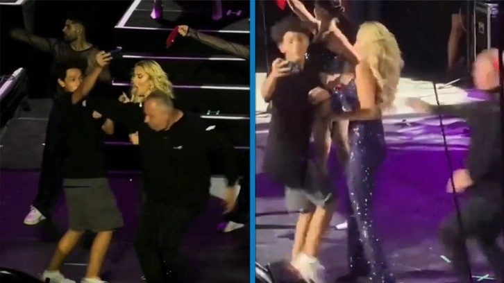 Sahnede şarkı söylediği sırada bir anda sahneye fırlayarak fotoğraf çekmeye çalışan hayranı Hadise’yi korkuttu.