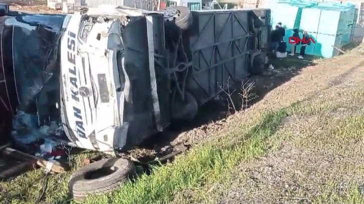 Malatya'da otomobille çarpıştıktan sonra devrilen otobüsteki 15 kişi yaralandı.