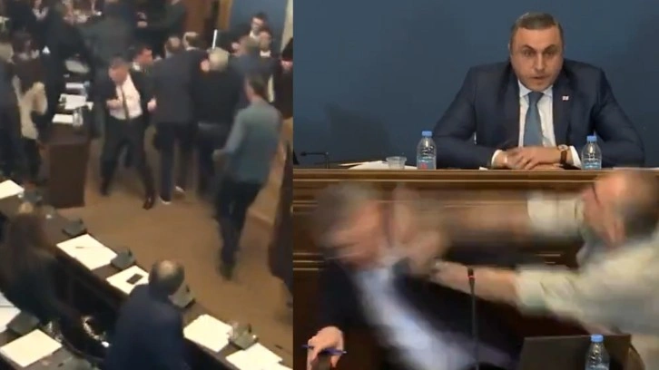 Gürcistan'da "yabancı etkinin şeffaflığı" konulu yasa tasarısı parlamentoda kavgaya neden oldu. Kavagda yumruklar konuştu. İşte o görüntüler...