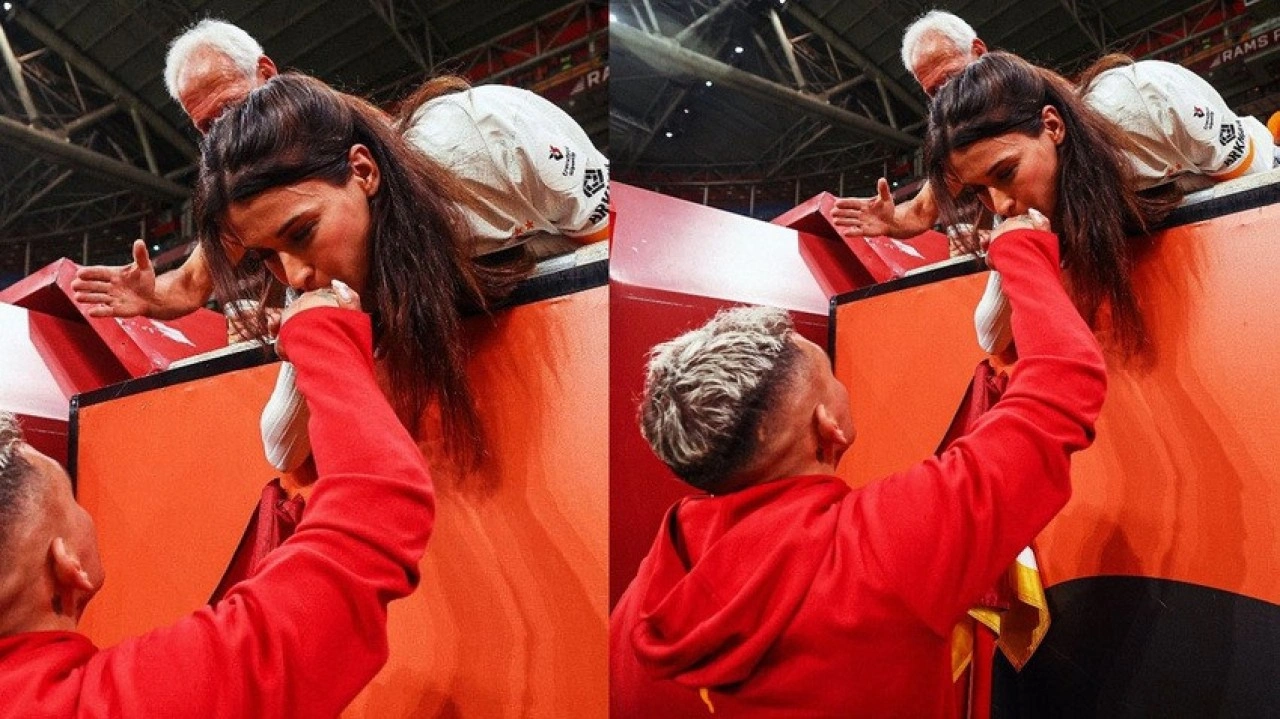 Trendyol Süper Lig'in 10. haftasında oynanacak Galatasaray Beşiktaş derbisi için nefesler tutuldu. Artık dev derbinin başlamasına sayılı dakikalar kaldı. İki takım da ısınmak için sahaya çıkarken Galatasaraylı Lucas Torreira'yı bir sürpriz bekliyordu. Sahaya adım atar atmaz tribünlere doğru bakmaya başlayan Uruguaylı futbolcu, sevgilisi Devrim Özkan'ı gördü. Özkan sevgilisi ile kısa bir süre sohbet ettikten sonra elini öperek sahaya gönderdi.