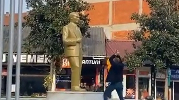 Sakarya'nın Akyazı ilçesine bağlı Ömercikler Mahallesi'nde ismi öğrenilemeyen bir kişi, elindeki balyozla Atatürk heykeline vurarak saldırdı.