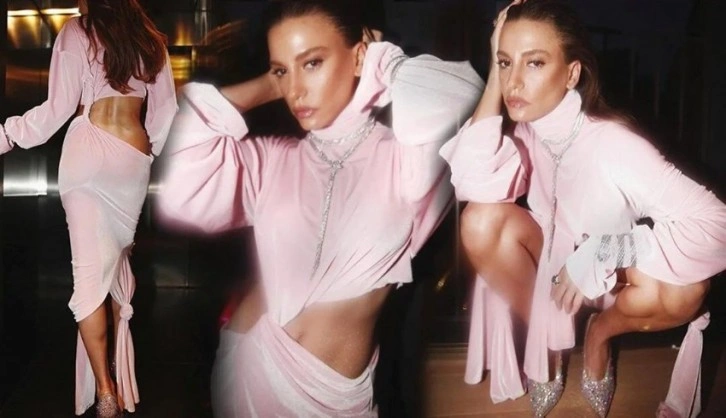 Toz pembe elbisesiyle birbirinden iddialı pozlar veren güzel oyuncu çömelerek poz verdi. Sarıkaya'nın cesur paylaşımı kısa sürede binlerce beğeni ve yorum aldı.