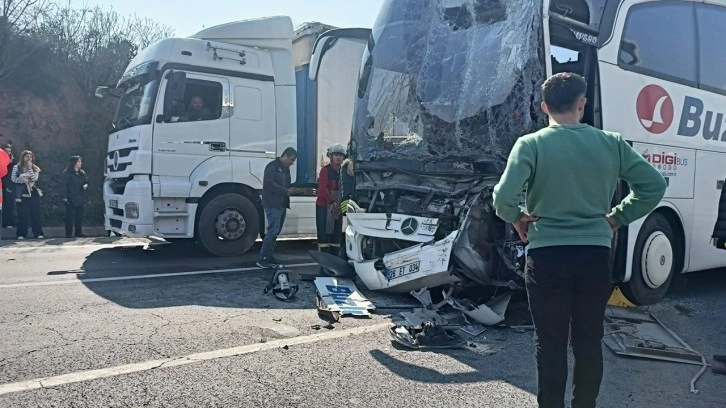 Kaza, saat 14.30 sıralarında TEM Otoyolu’nun Kocaeli-Dilovası geçişinde meydana geldi. Ankara istikametinde yolcu otobüsü, hafif ticari araç ve TIR çarpıştı.