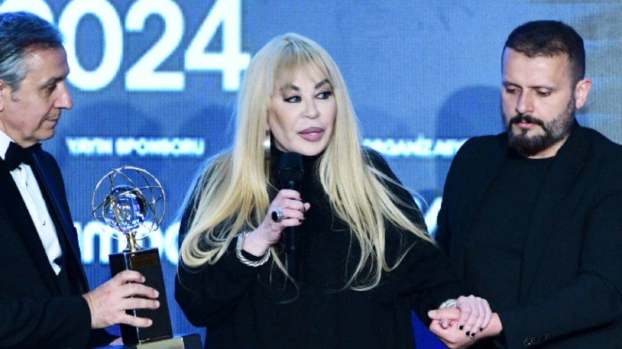 Özer, "Beyin damarlarımdan ikisinde önemli ölçüde daralmalar var. Bu nedenle sendeleyerek dengesiz yürüyorum. Ama ödülümü almak ve bu gece burada her şeye rağmen dimdik ayakta durduğumuzu göstermek için geldim" ifadelerini kullandı.
