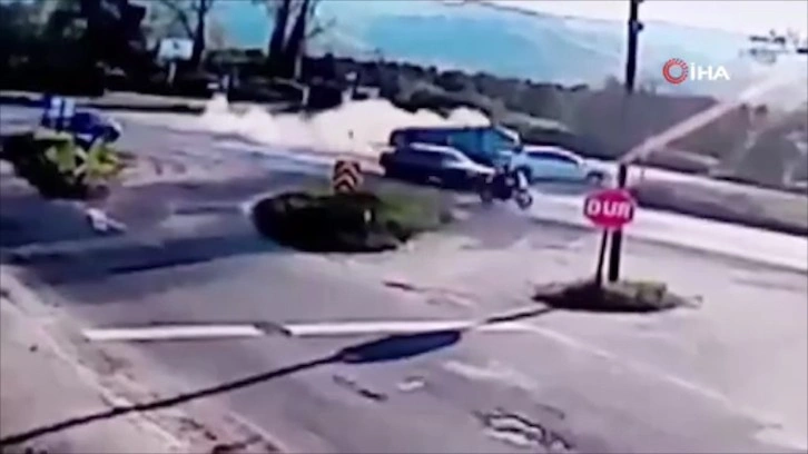 Kazaya karışan araçlar çekici yardımıyla olay yerinden kaldırıldı. Kaza anı ise bir güvenlik kamerasına yansıdı.